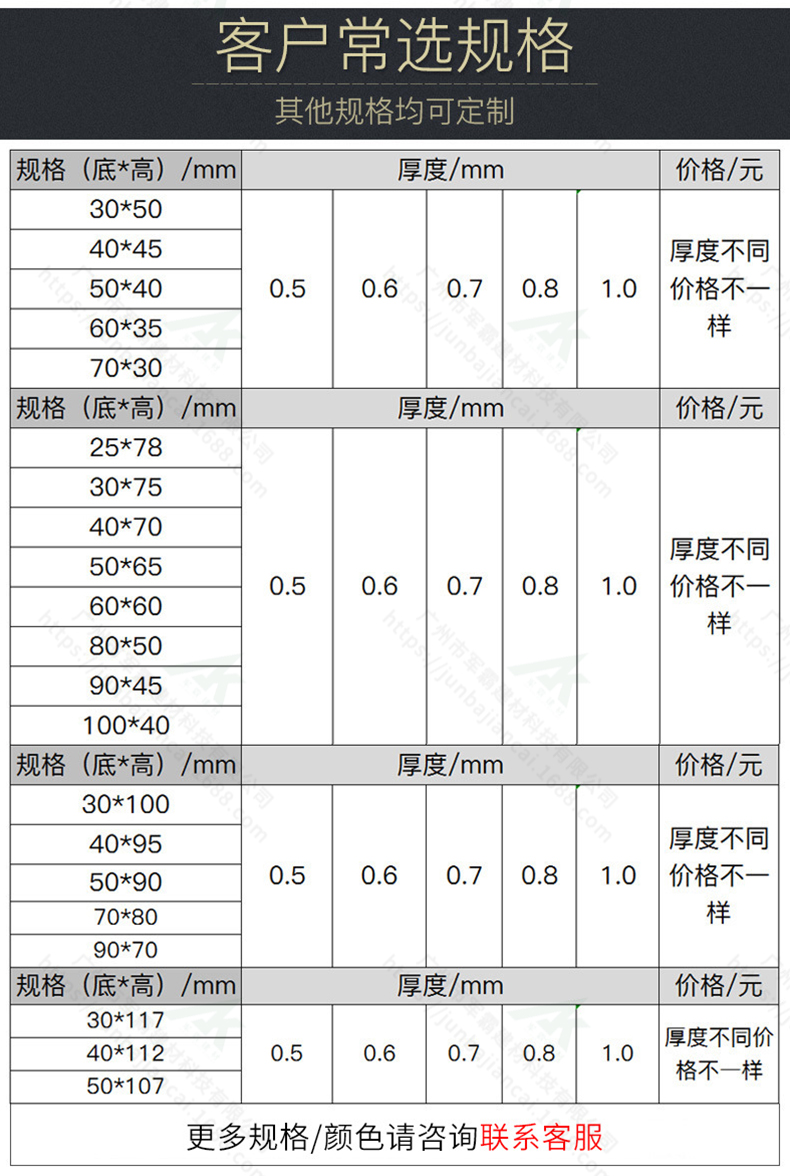 特殊定制:長度6米以內可任意定制,特殊尺寸、表面顏色、安裝配套可根據需求定制